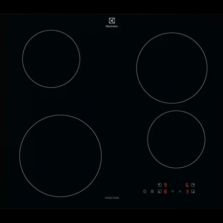 Funções: Função PowerBoost, Segurança de crianças, Bloqueio de painel, Indicador de calor residual, Desativar som